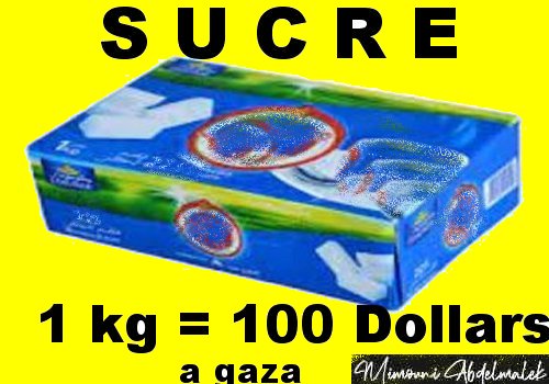 بكل إحباط وحزن وأسف نقدم لكم ثمن المواد الغدائية في غزة اليوم السكر 100 دولار للكيلو الطحين 27 دولار للكيلو الروز 40 دولار للكيلو العدس 45 دولار للكيلو الزيت 28 دولار ليتر البطايس 12 دولار للكيلو Farine blanche ≈ 16 – 27 USD/kg selon UN Media Riz ≈ 40 USD/kg Lentilles ≈ 45 USD/kg Haricots ≈ 45 USD/kg Huile (cookingContinue Reading